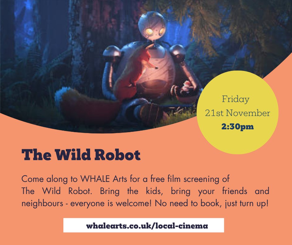 The WHALE Community Cinema will be holding a screening of The Wild Robot on Friday 21 November 2025, 2.30pm.