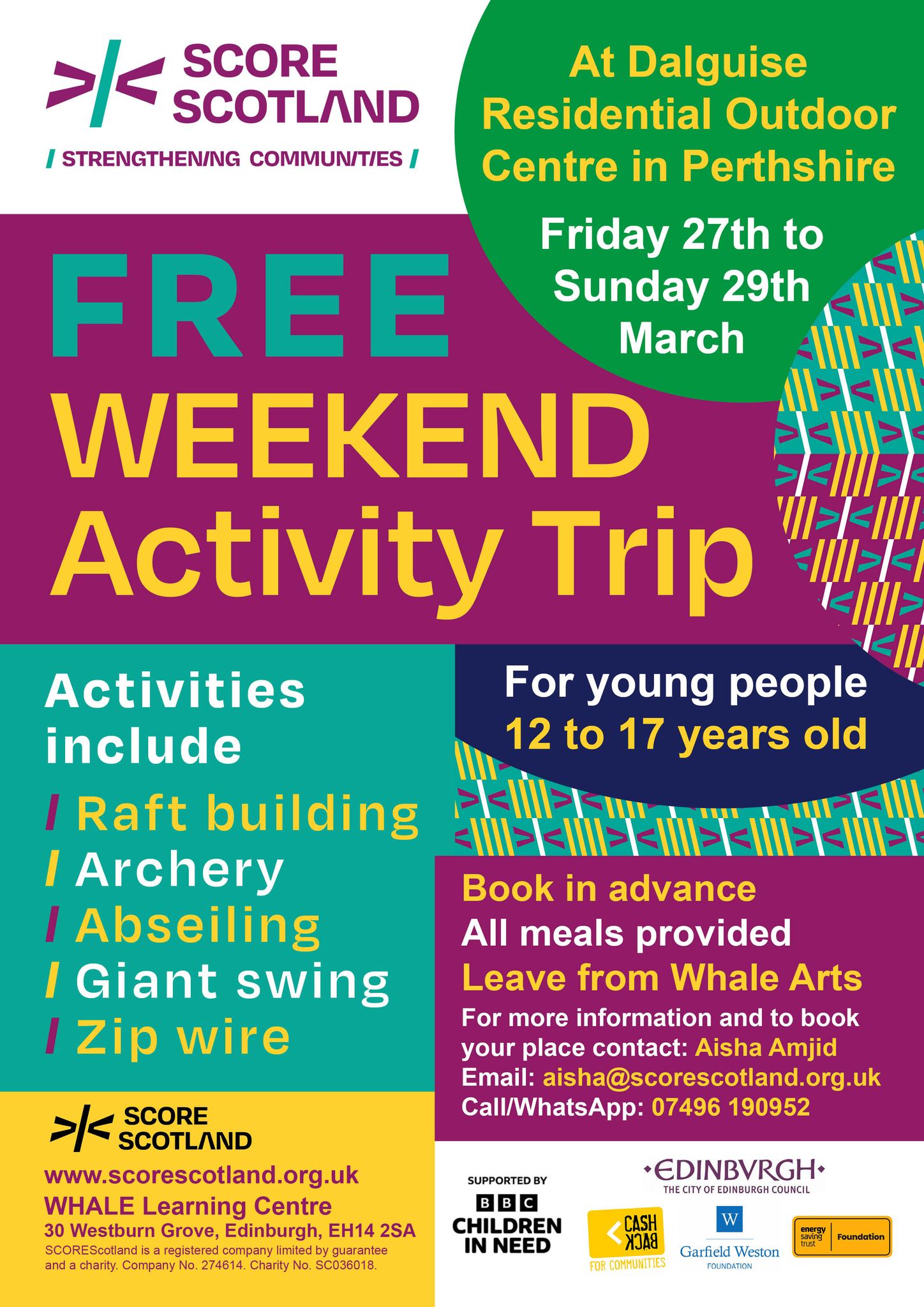 SCOREscotland is delighted to announce an action-packed residential at Dalguise Residential Outdoor Centre in Perthshire from Friday 27th to Sunday 29th March 2026.