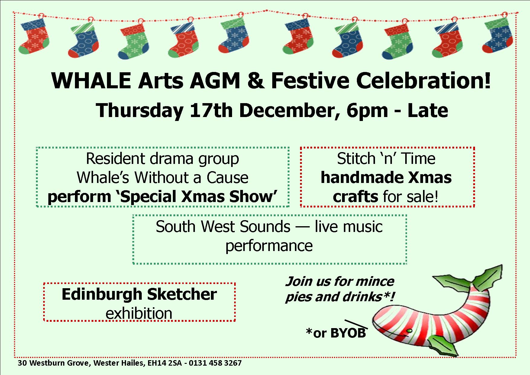 WHALE Arts AGM and Festive Celebration WHALE Arts will be holding their AGM and annual festive celebration next Thursday 17 December 2015, from 6.00pm at...