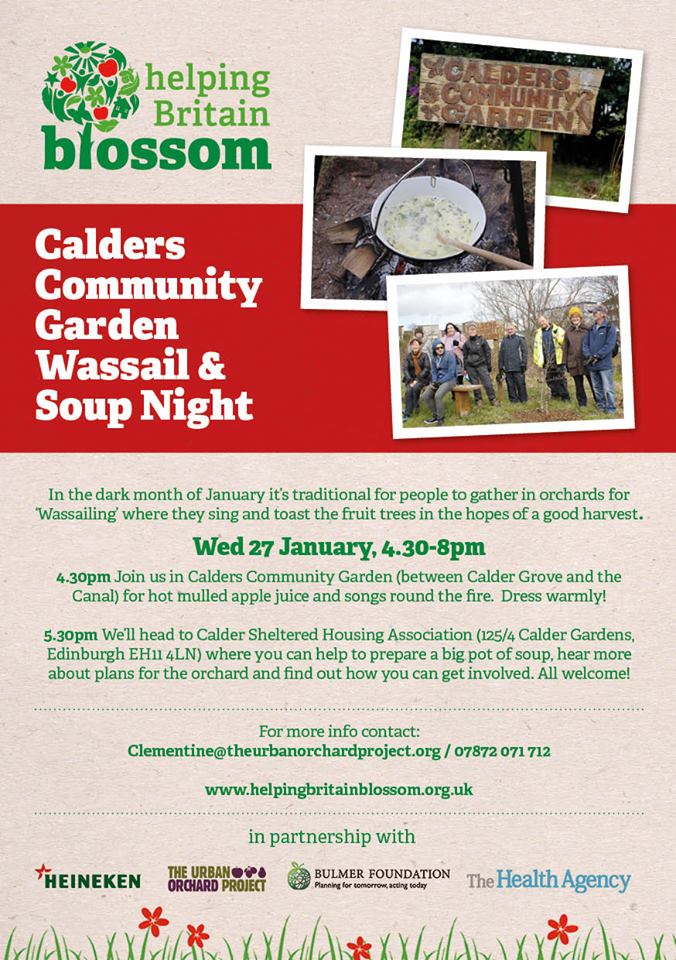 Calders Community Garden Wassail and Soup Night Helping Britain Blossom would like to invite you to the Calders Community Garden for a Wassail and soup night...